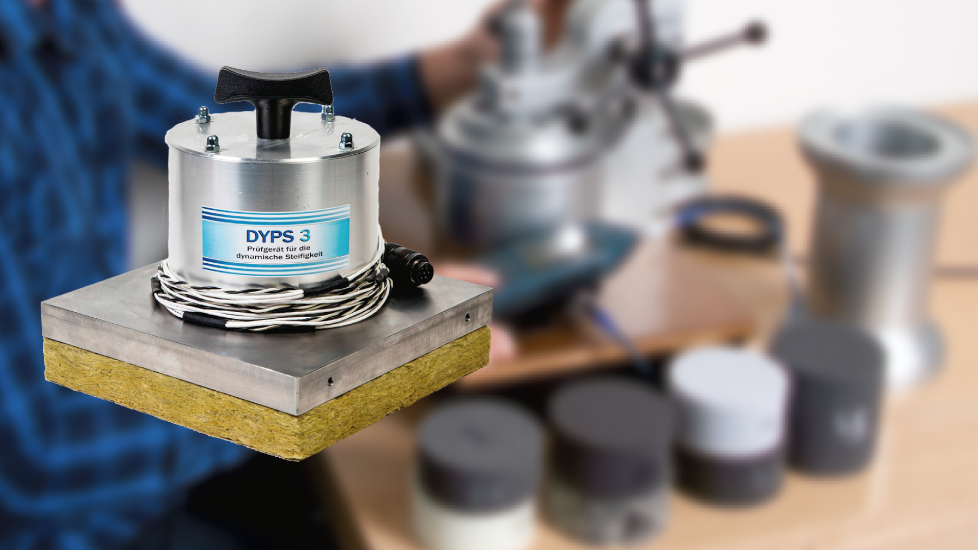Für die Bewertung von Trittschalldämmstoffen ist die dynamische Steifigkeit ein wichtiger Indikator. Sie beschreibt das Federungsvermögen einer Dämmschicht und wird nach DIN EN 29052-1 gemessen. Ein Messgerät, das nach der in der Norm beschriebenen Referenzmethode der sinusförmigen Anregung arbeitet, ist das DYPS 3. Die ermittelte dynamische Steifigkeit ermöglicht eine zuverlässige Beurteilung der Trittschalldämmwirkung und unterstützt die Entwicklung effizienter Bodenaufbauten.