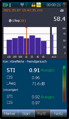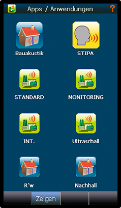 Der Sprachübertragungsindex STI (Speech Transmission Index) hat sich als wichtiges Werkzeug zur objektiven Bewertung der Sprachverständlichkeit bewährt. Die Geräte unterstützen beide Messmethoden entsprechend der IEC 60268-16, sowohl die STIPA-Methode als auch die Messung des vollständigen STI über die Impulsantwort (SweptSine). Zur Durchführung einer STIPA-Messung laden Sie einfach die STIPA-App, pegeln das Anregungssignal ein und starten die Messung. Nach kurzer Zeit wird der STI-Wert angezeigt.