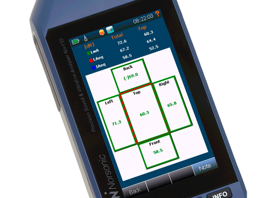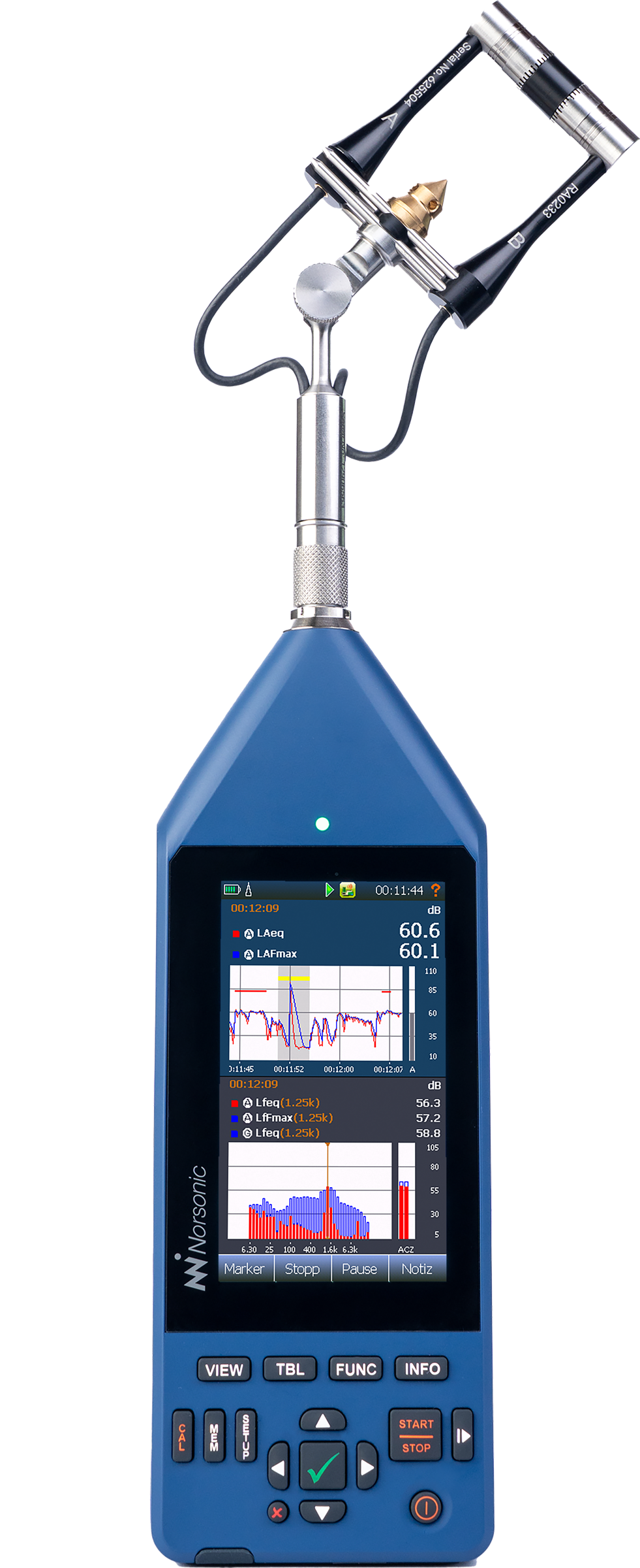Der Nor150 – ausgestattet mit der Intensitätsoption und der Intensitätssonde Nor1290 – ist wohl das modernste Werkzeug für alle Arten der Schallintensitätsmessungen. Es zeichnet sich durch besondere Praxistauglichkeit und Anwenderfreundlichkeit in allen denkbaren Messumgebungen aus. Auf Grundlage einer neuartigen, von Norsonic erfundenen, Methode zur Korrektur des Phasenganges eines Schallintensitätsanalysators kann der komplette Frequenzbereich mit nur einem Spacer gemessen werden!