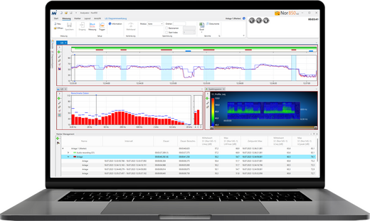 Das Software-Modul Nor850-GA bietet den höchst möglichen Komfort bei der Auswertung von Pegelzeitverlaufmessungen und Frequenzspektren: