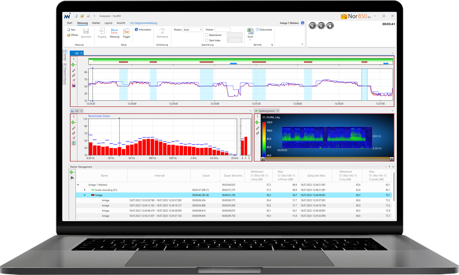 Dank des Berichtsgenerators können Auswertungen nach TA-Lärm, DIN 45680, DIN 45681, AVV Baulärm, LärmVibrationsArbSchV, etc. per Mausklick erstellt werden. Darüber hinaus bietet der Berichtsgenerator auch die Möglichkeit des Datenexportes in frei konfigurierbare Excel-Vorlagen. Die Zeiten des Copy & Paste von der Auswertesoftware in den Messbericht gehören damit der Vergangenheit an. Eleminieren Sie diese Fehlerquelle und stellen Sie in Ihren vorhandenen Excel-Berichten über Textmarken direkt die Verknüpfung zur Nor850-GA her. Damit schaffen Sie neben dem höchst möglichen Komfort auch noch die höchst mögliche Sicherheit.