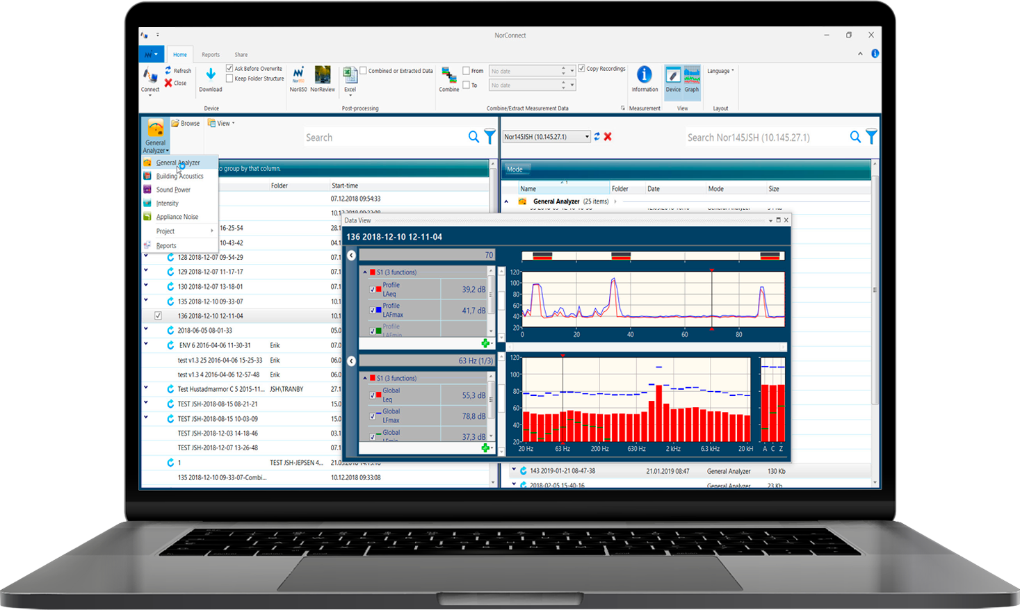 NorConnect ist Ihre leistungsstarke, kostenfreie Software für die komfortable Datenübertragung und professionelle Messberichterstellung. Die Software unterstützt die Schallpegelmesser Nor145, Nor150, Nor140 (via SD-Karte) sowie NL53 – und macht die Weiterverarbeitung Ihrer Messdaten so einfach wie nie: per intuitivem Drag & Drop übertragen Sie Ihre Daten in Sekunden auf den PC. Im integrierten Vorschau-Fenster sehen Sie sofort den Pegelzeitverlauf und das Frequenzspektrum der ausgewählten Messung. Komfortable Zoom-Funktionen ermöglichen eine detaillierte Analyse, während sich vorhandene Tonaufzeichnungen direkt abspielen lassen – für maximale Transparenz und Nachvollziehbarkeit. Mit NorConnect verwandeln Sie Messdaten effizient in aussagekräftige, normgerechte Berichte – schnell, übersichtlich und professionell. Es stehen Berichtsvorlagen für folgende Messarten bereit: