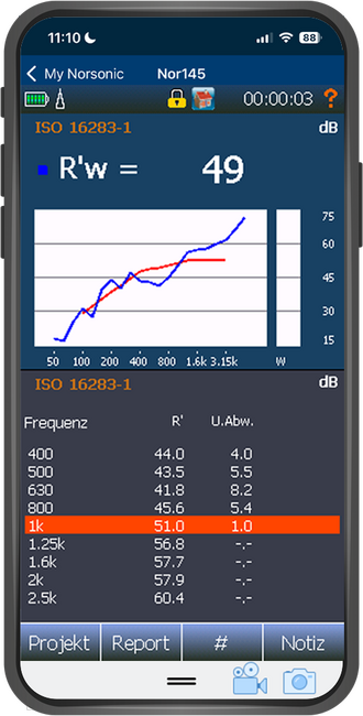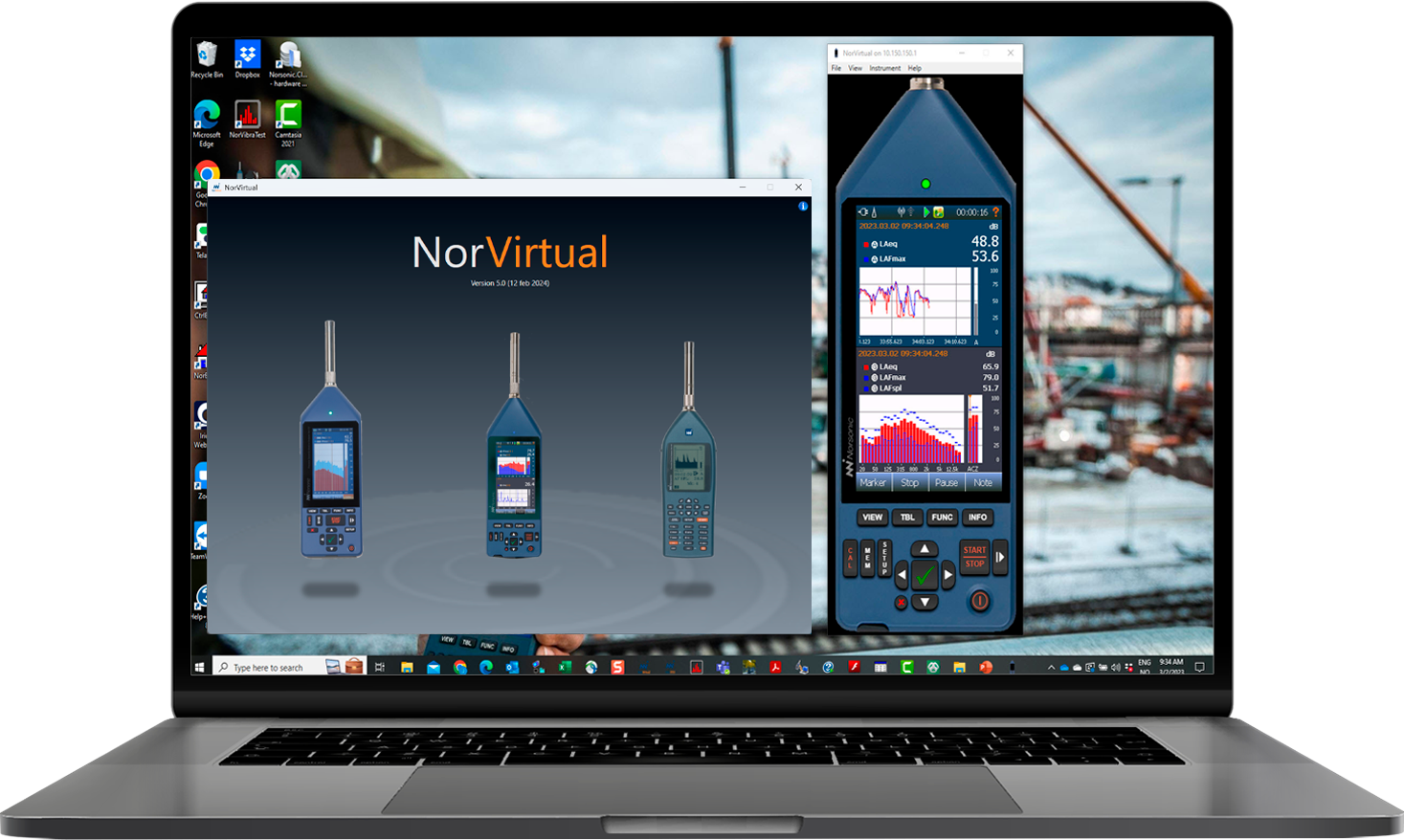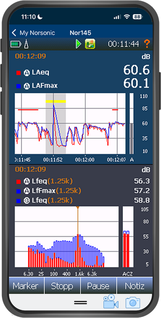 NorVirtual ist eine kostenfreie Software zur Darstellung und Steuerung des Schallpegelmessers Nor145, Nor150, Nor140 oder NL53. NorVirtual steht sowohl als Software für PCs (Windows), als auch als App für Smartphones und Tablets (Android / IOS) zur Verfügung. Der Schallpegelmesser wird via USB oder LAN / WLAN verbunden. Die Steuerung vom PC kann z.B. dazu dienen, einem größeren Publikum die Bedienung des Gerätes via Beamer zu präsentieren. Die Steuerung vom Smartphone oder Tablet hingegen - dann typischerweise mit dem Nor145 über WLAN - bietet im realen Messeinsatz die Möglichkeit, den Schallpegelmesser kabellos aus einiger Entfernung zu bedienen. Über NorVirtual ist das Gerät 1:1 so zu bedienen, als wenn Sie es in der Hand halten würden, inklusive dem Einfügen von Markern und Notizen. Nehmen Sie Sprachnotizen und Fotos direkt über die App auf. Diese werden automatisch mit Zeitstempel in der Messdatei gespeichert.