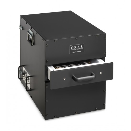 Die Akustische Testbox ist eine schalltote Prüfkammer geeignet für akustische Tests während der Fertigung von mobilen Geräten, z. B. Handys, Tablets, Bluetooth-Lautsprechersystemen oder in ähnlicher Größe tragbare Geräte. Es verfügt über eine flexible Plattform, die für die spezifischen Anforderungen dementsprechend konfiguriert werden kann.