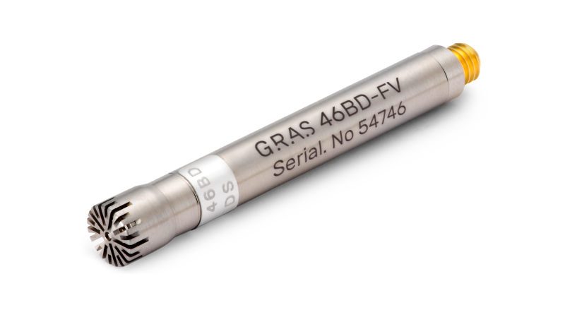 Mikrofonset bestehend aus vorpolarisiertem 1/4"-Druckmikrofon 40BD-S3 ("front-vented") und 1/4" CCP-Vorverstärker 26CB mit integriertem TEDS-Chip und Mikrodot-Stecker.