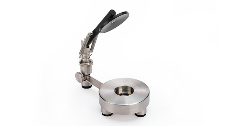 Für G.R.A.S. Kuppler und künstliche Ohren. Sie besitzt einen justierbaren, federbelasteten Arm, um eine variable Kraft auf das Prüfobjekt auszuüben.