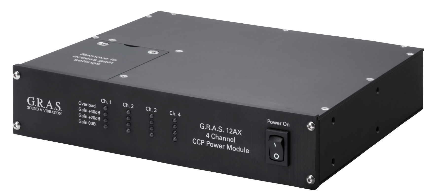 Das 12AX ist eine rauscharme CCP/IEPE-Versorgung für 4-kanalige Messungen für CCP-Mikrofonsets.